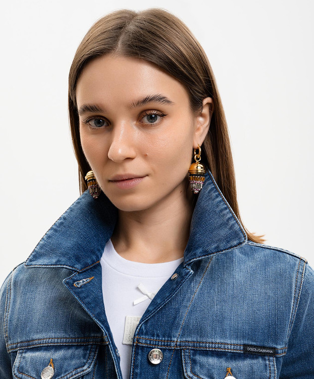 Золотисті сережки Lantern з кристалами